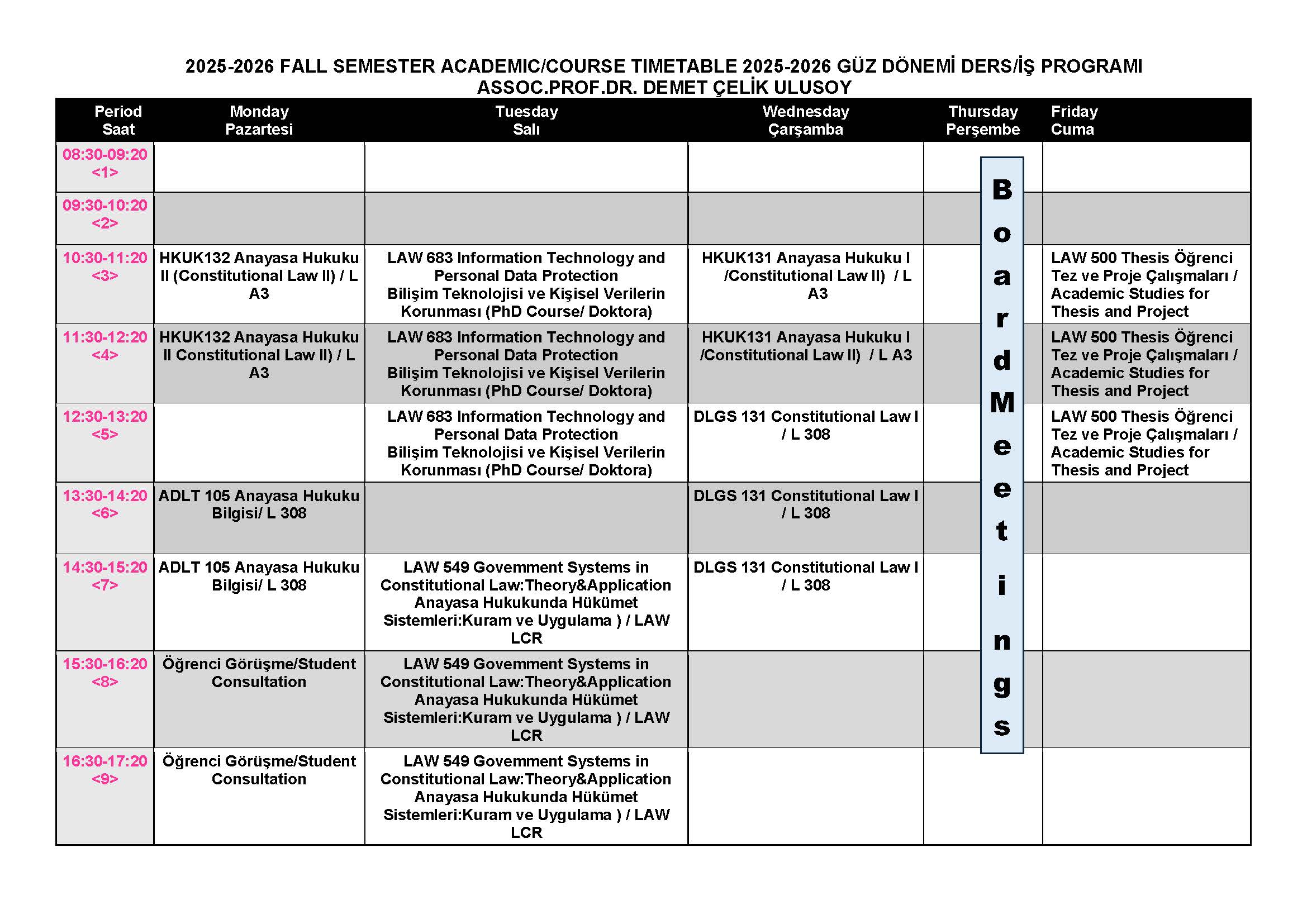 DOÇ. DR. DEMET ÇELİK ULUSOY DERSLER BAZINDA AKADEMİK TAKVİM (Academic/Courses Calendar)