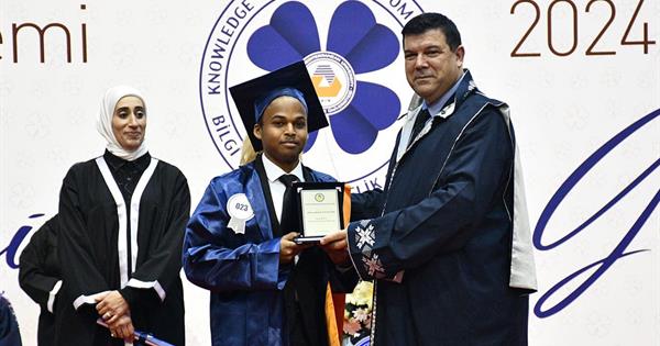 Following the speeches, top ranking students of the faculties and departments were presented with diplomas and awards. The ceremony continued with the presentation of diplomas to postgraduate students and awards to doctoral thesis supervisors. Then, undergraduate and associate degree program graduates received their diplomas. The ceremony concluded with a cap throwing session of students accompanied by Rector Prof. Dr. Hasan Kılıç and Vice Rector’s count down.