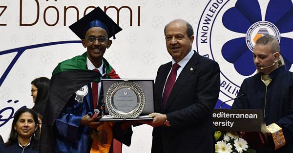 Present during the ceremony were; the President of the Turkish Republic of Northern Cyprus (TRNC) Ersin Tatar, TRNC Minister of National Education Nazım Çavuşoğlu, UBP Member of the Parliament and General Secretary Oğuzhan Hasipoğlu, CTP Member of the Parliament Teberrüken Uluçay, Famagusta District Governor Özden Keser, Famagusta Consul General İlyas Çetin, Officials from International Embassies, EMU Board of Trustees (VYK) President Dr. Erdal Özcenk, EMU Rector Prof. Dr. Hasan Kılıç, Girne American Univeristy Rector Prof. Dr. Serdar Yurtsever, Famagusta Section Commander Colonel Anıl Yıldız, Higher Education Planning, Accreditation and Coordination Council (YODAK) Member Prof. Dr. Remziye Terkan, Department of Culture Director Şirin Zaimağaoğlu, Presidency Advisor and EMU VYK Members Özgür Yuca and Server Karabacak, EMU Vice Rectors Prof. Dr. Osman M. Karatepe, Prof. Dr. Salih Katırcıoğlu, Prof. Dr. Sonuç Zorlu and Prof. Dr. Ali Öztüren, EMU Acting General Secretary Derviş Ekşici, Senate Members, Faculty Members, graduates and their families.