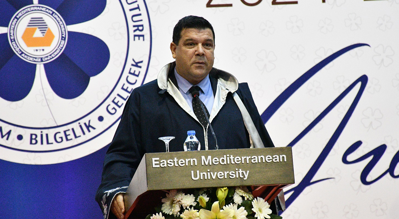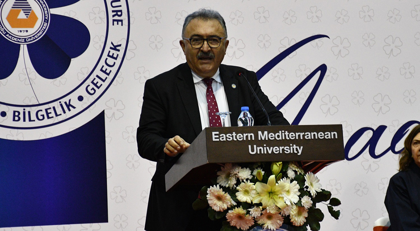 Stating that they have gathered to celebrate the fruits of hardwork, ambition and determination, EMU VYK President Dr. Erdal Özcenk added that graduation from EMU does not only refer to receiving a diploma, but also to be a member of a rooted family, a global success and future.